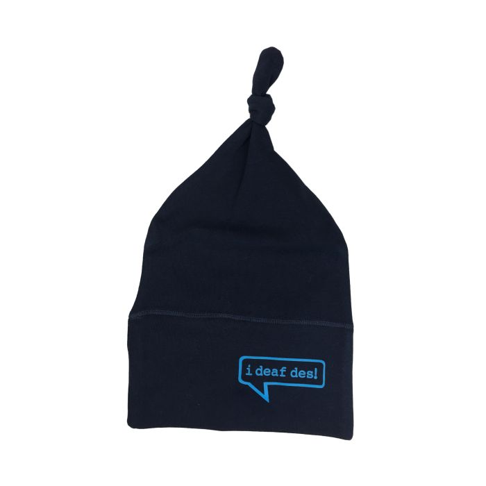 Baby Schlumpfmütze mit I DEAF DES! Typo